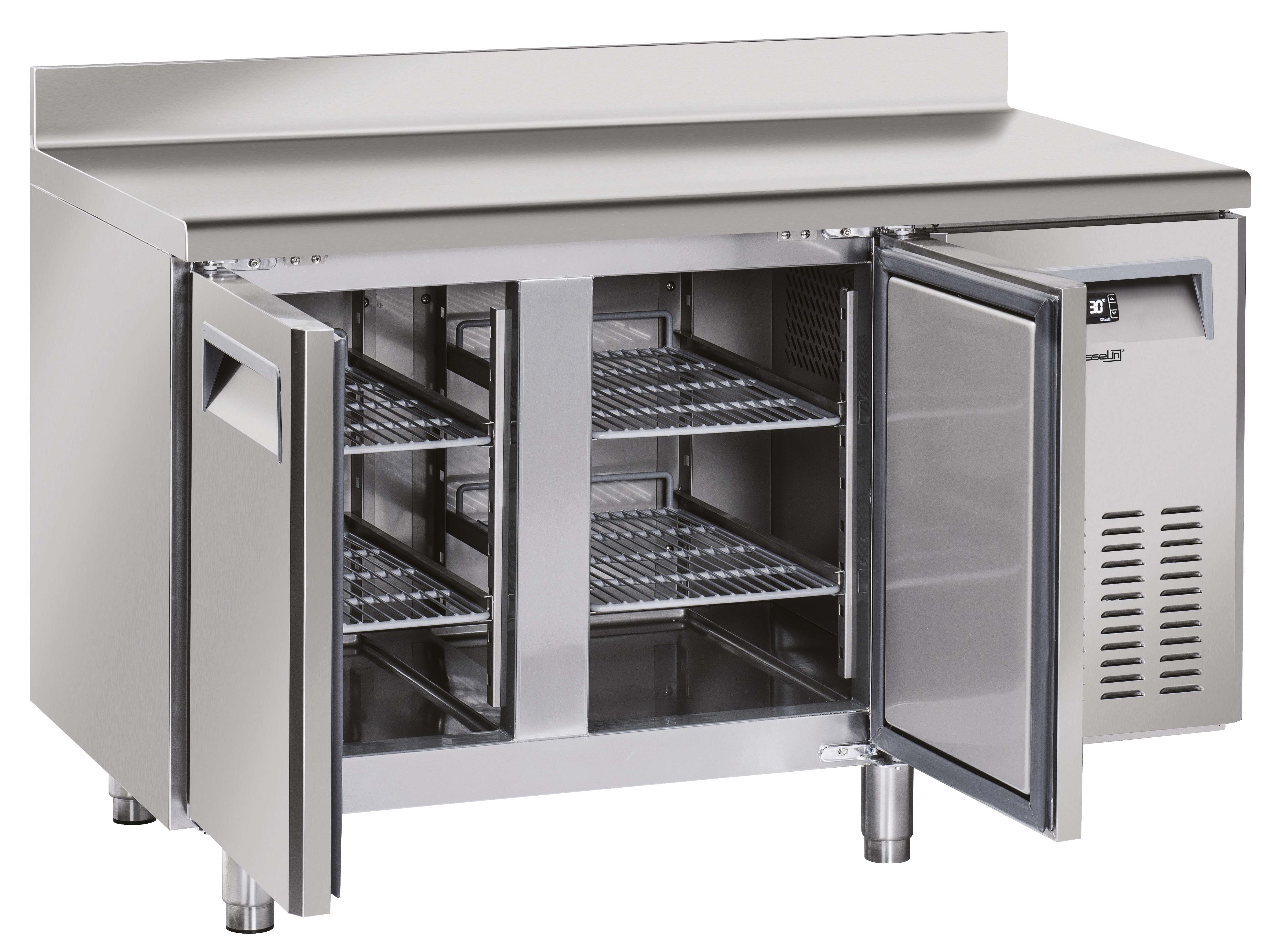 Table réfrigérée en inox avec dosseret 2 portes